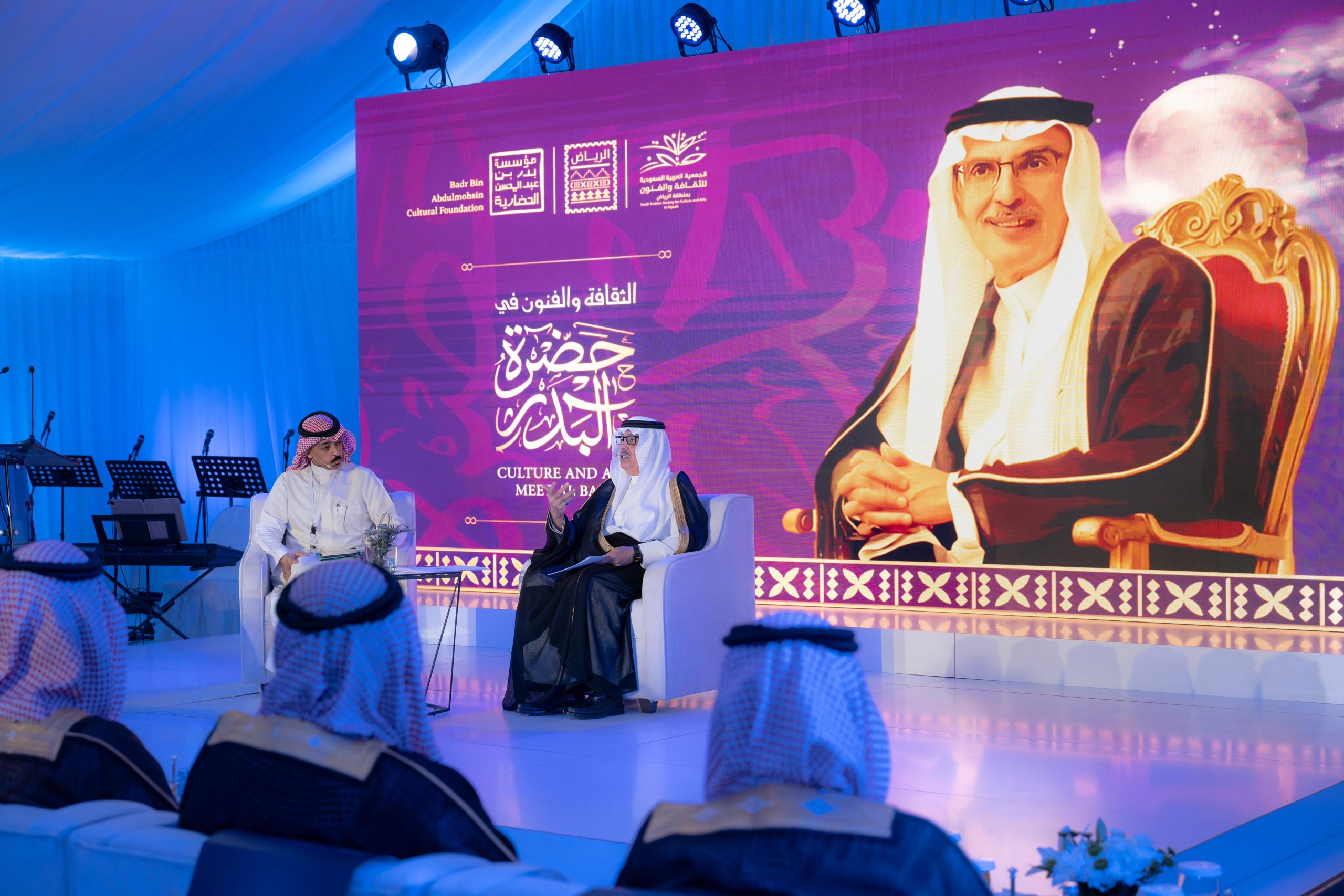 وتضمن برنامج الملتقى عرض فيلم “في حضرة البدر” الذي أنتجته الجمعية ويسلط الضوء على مسيرة البدر الفنية وتأثيره في الساحة الثقافية، وكذلك “ميدلي البدر” الذي يشمل فقرات غنائية قدمتها الفرقة الموسيقية من قصائد البدر المغناة في الوطن مثل “فوق هام السحب” و”حدثينا يا روابي نجد”، وفقرة أخرى عن الأغاني العاطفية ومنها “صوتك يناديني” و”المسافر راح”، وكذلك عرض مشهد من روايته “توق” بإخراج بندر الحازمي.