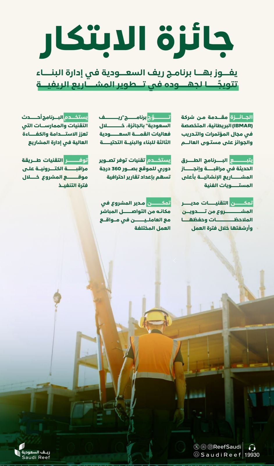 حصل برنامج التنمية الريفية الزراعية المستدامة “ريف السعودية”، على جائزة “الشراكة في مجال الابتكار في إدارة البناء”، التي تقدمها شركة (IBMAR) البريطانية، المتخصصة في مجال المؤتمرات والتدريب والجوائز على مستوى العالم.