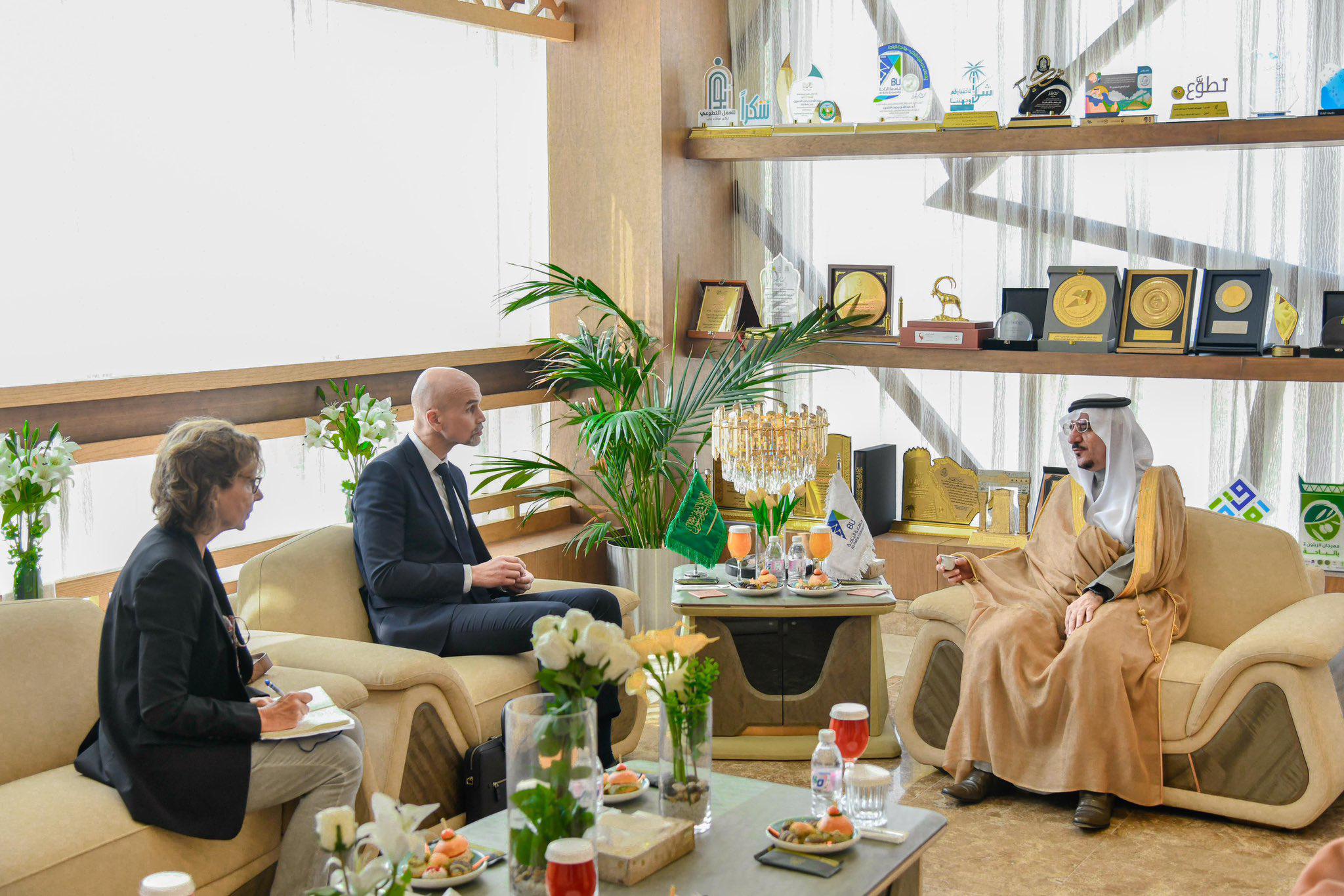 استقبل معالي رئيس جامعة الباحة أ.د. عبدالله بن يحيى الحسين ؛ القنصل العام لجمهورية فرنسا بجدة السيد محمد ناهض ، والملحق التعاون والعمل الثقافي لدى القنصلية الفرنسية السيدة ليزبيت شوكيه ، بحضور وكلاء الجامعة ، وجرى خلال اللقاء تبادل الأحاديث الوديّة ، ونبذة تعريفية عن الجامعة ومساراتها الأكاديمية والبحثية والفنية والإدارية المختلفة ، وإنجازاتها خلال الاعوام الماضية في مختلف المجالات