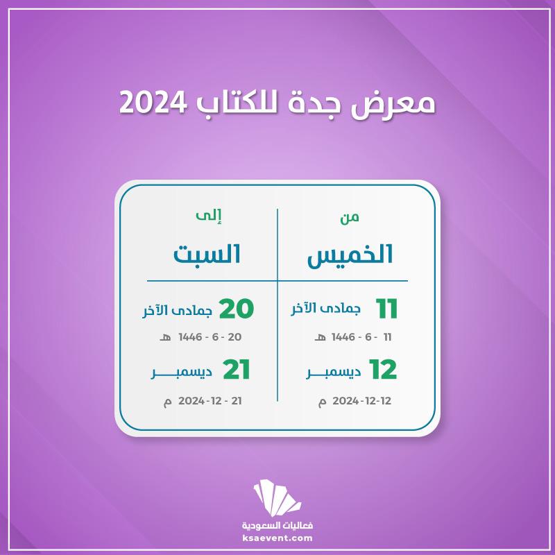 تستعد هيئة الأدب والنشر والترجمة لإستقبال معرض جدة للكتاب 2024 في الفترة من الثاني عشر وحتي الواحد والعشرون من ديسمبر 2024 الموافق الحادي عشر وحتي العشرون من جمادى الآخر 1446 هجري.