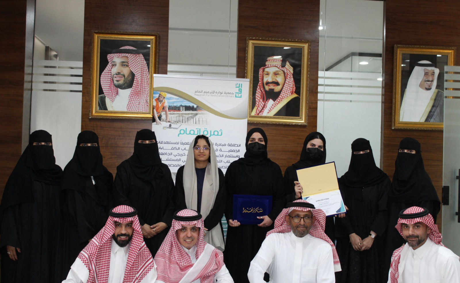 في احتفالية مليئة بالفخر والامتنان، كرم الرئيس التنفيذي في جمعية نواره للترميم اتمام نوره العقلا ، نخبة من المتطوعين من مهندسين، مصممين، تقنيين، وإعلاميين نظير عطائهم الثمين ضمن برنامج “ثمرة إتمام” ، والتي أطلقتها تفعيلا لمستهدفات الجمعية في استقطاب الكفاءات واستثمار الخبرات من الجامعات طلاب التدريب التعاوني، والمختصين في إدارة المشروعات
