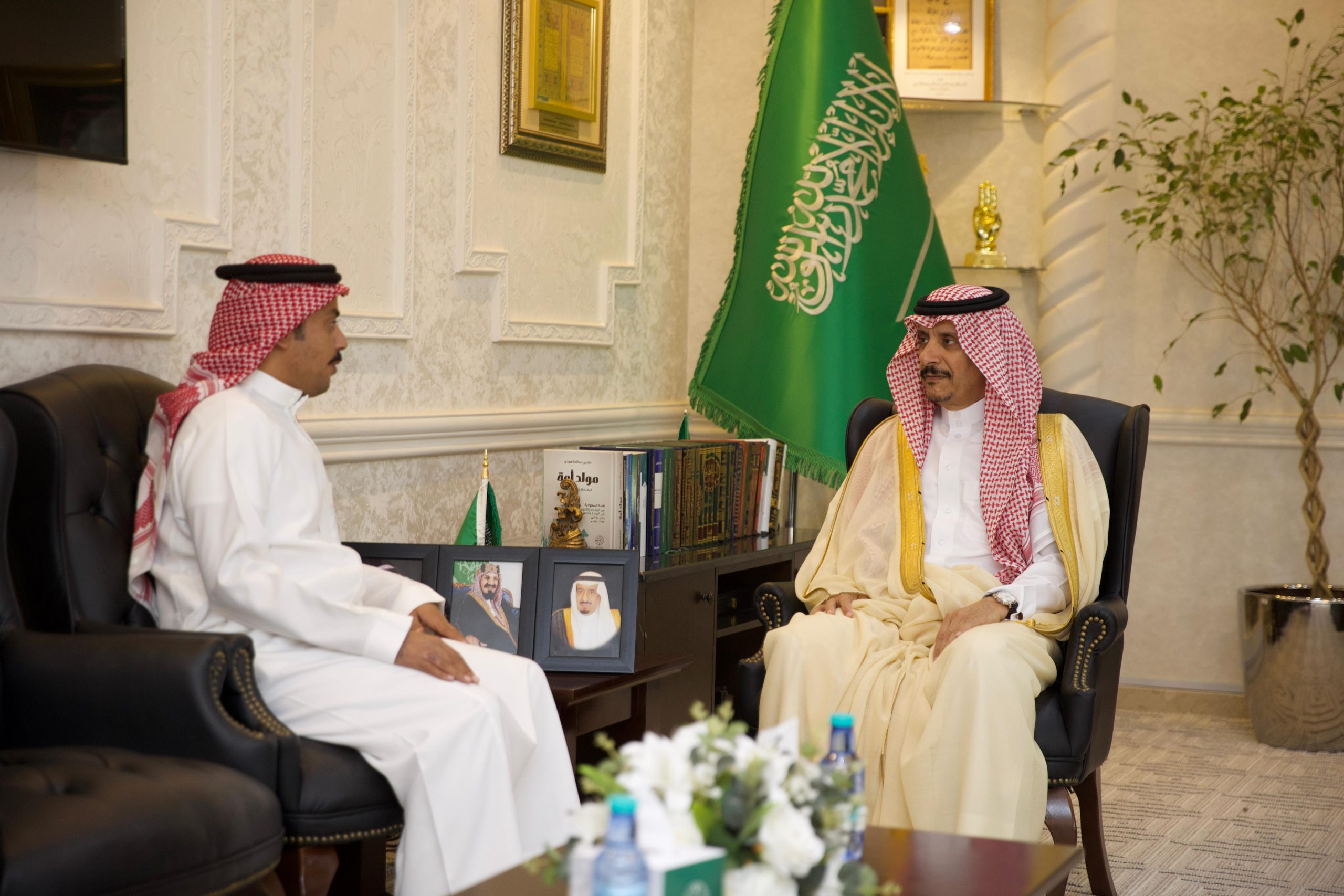 استقبل صاحب السمو الأمير عبدالرحمن بن عبدالله بن فيصل محافظ حفرالباطن ، بمكتبه باليوم مدير مدن الصناعية بالمحافظة براك حمود المريخي .