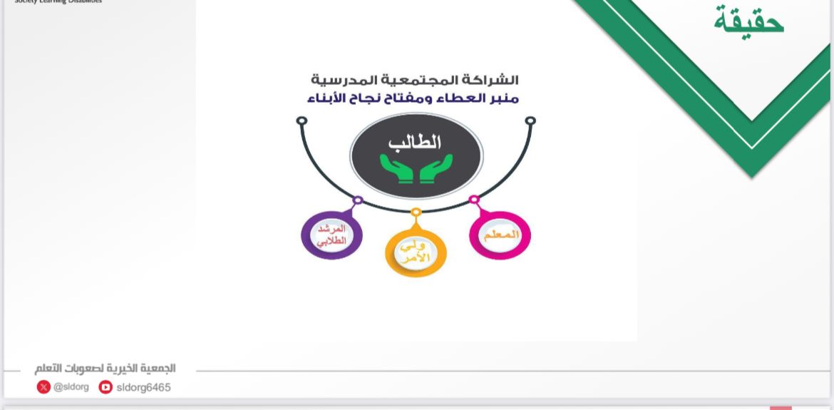 نفذت جمعية صعوبات التعلم ضمن برنامج( غراس ) لقاءً توعوياً بعنوان (تفعيل دور اولياء الأمور في عملية تعلم الابناء ) وذلك اليوم الأربعاء 27 ديسمبر 2024 (عبر القاعة الافتراضية) قدمه الأستاذ/ شعبان الألمعي معلم في تعليم أبها – الأستاذة /منيرة الحربي معلمة في تعليم جدة ، تناولا في اللقاء أهميه الشراكة المجتمعية المدرسية بين الأسرة والمرشد الطلابي والمعلم لخدمة الطالب مؤكدين على ضرورة تعزيز التعاون بين الأسرة وعناصر المنظومة التعليمية وفق رؤية المملكة 2030 التي تتطلب أن يكون الجميع حاضر وفاعلاً في العملية التعليمية .