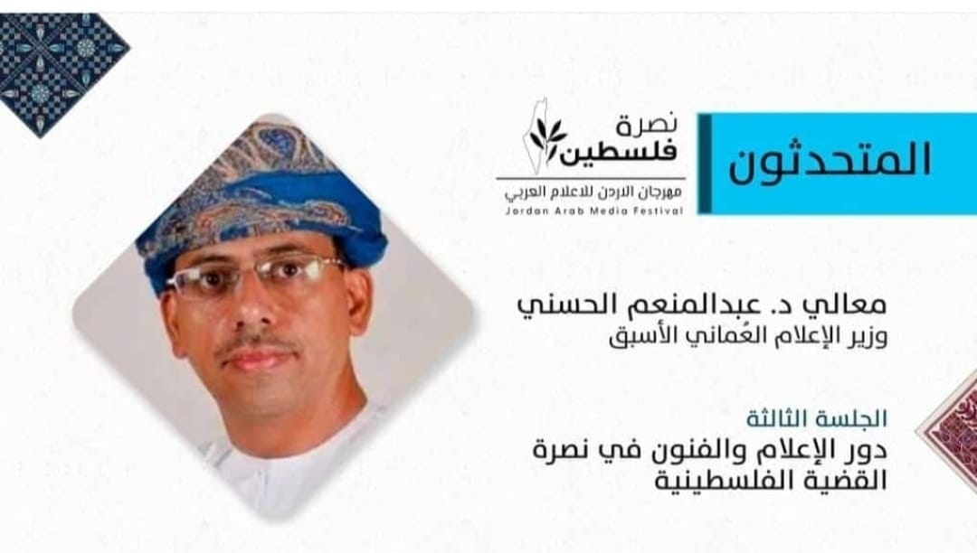 معالي الدكتور عبد المنعم الحسني وزير الإعلام الأسبق لسلطنة عُمان متحدثاً في مهرجان الأردن للإعلام العربي نصرة فلسطين