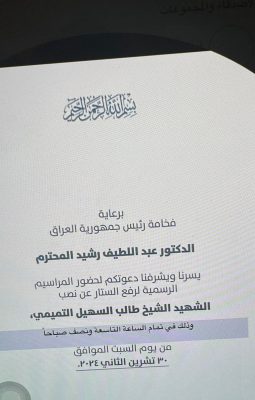 وتابع البيان، أن “حفل الافتتاح حضره رئيس مجلس النواب محمود المشهداني، ورئيس تيار الحكمة الوطني السيد عمار الحكيم، ورئيس مجلس الوزراء الأسبق إياد علاوي، ونائب رئيس مجلس الوزراء وزير الخارجية فؤاد حسين، ونائب رئيس مجلس الوزراء وزير التخطيط محمد تميم، والسيد حسين محمد هادي الصدر، وعائلة الشهيد طالب السهيل، إضافة إلى عدد من المسؤولين والشخصيات الاجتماعية.”