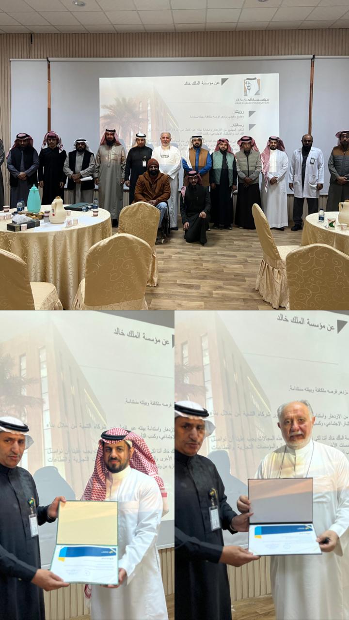 من جانبه قدم مدير مركز التنمية الاجتماعية بالقريات الأستاذ / سالم بن محمد الشراري شكره وتقديره للأستاذ / ماهر أبو حجله والأستاذ/ عبدالعزيز الضويان ومؤسسة الملك خالد.