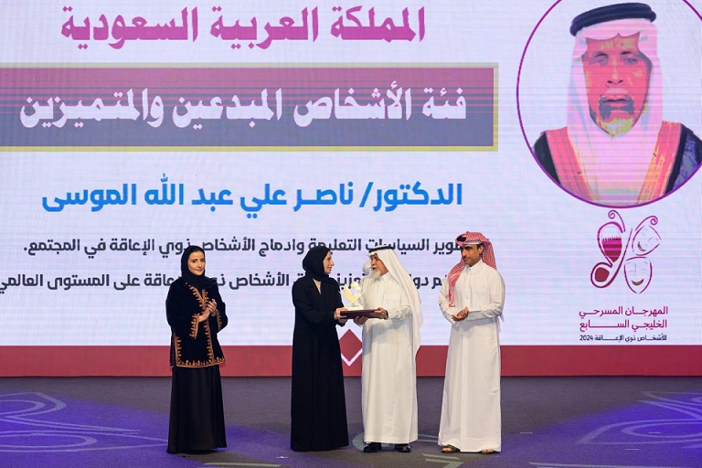 بكل فخر واعتزاز نال الدكتور ناصر الموسى عضو مجلس الشورى والمشرف العام على جائزة الشيخ محمد بن صالح بن سلطان للتفوق العلمي والابداع في التربية الخاصة ” جائزة الإبداع والتميز الخليجي في مجال الإعاقة” من هيئة الأشخاص ذوي الإعاقة وذلك في حفل اليوم العالمي للأشخاص ذوي الإعاقة نحتفي والذي أقيم تحت شعار “تعزيز قيادة الأشخاص ذوي الإعاقة من أجل مستقبل شامل ومستدام”.
