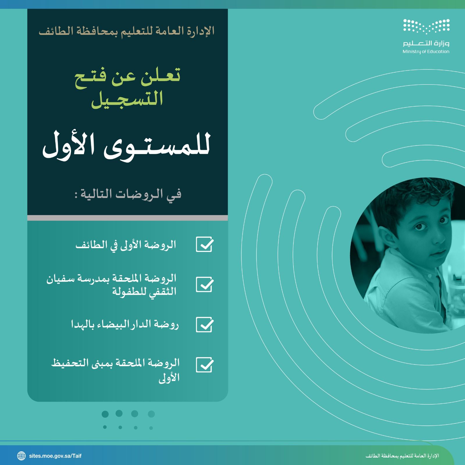 أعلنت الإدارة العامة للتعليم بالطائف أسماء الروضات التي تتضمن شواغر لتسجيل الأطفال “للمستوى الأول “ خلال هذا العام الدراسي 1446هـ
