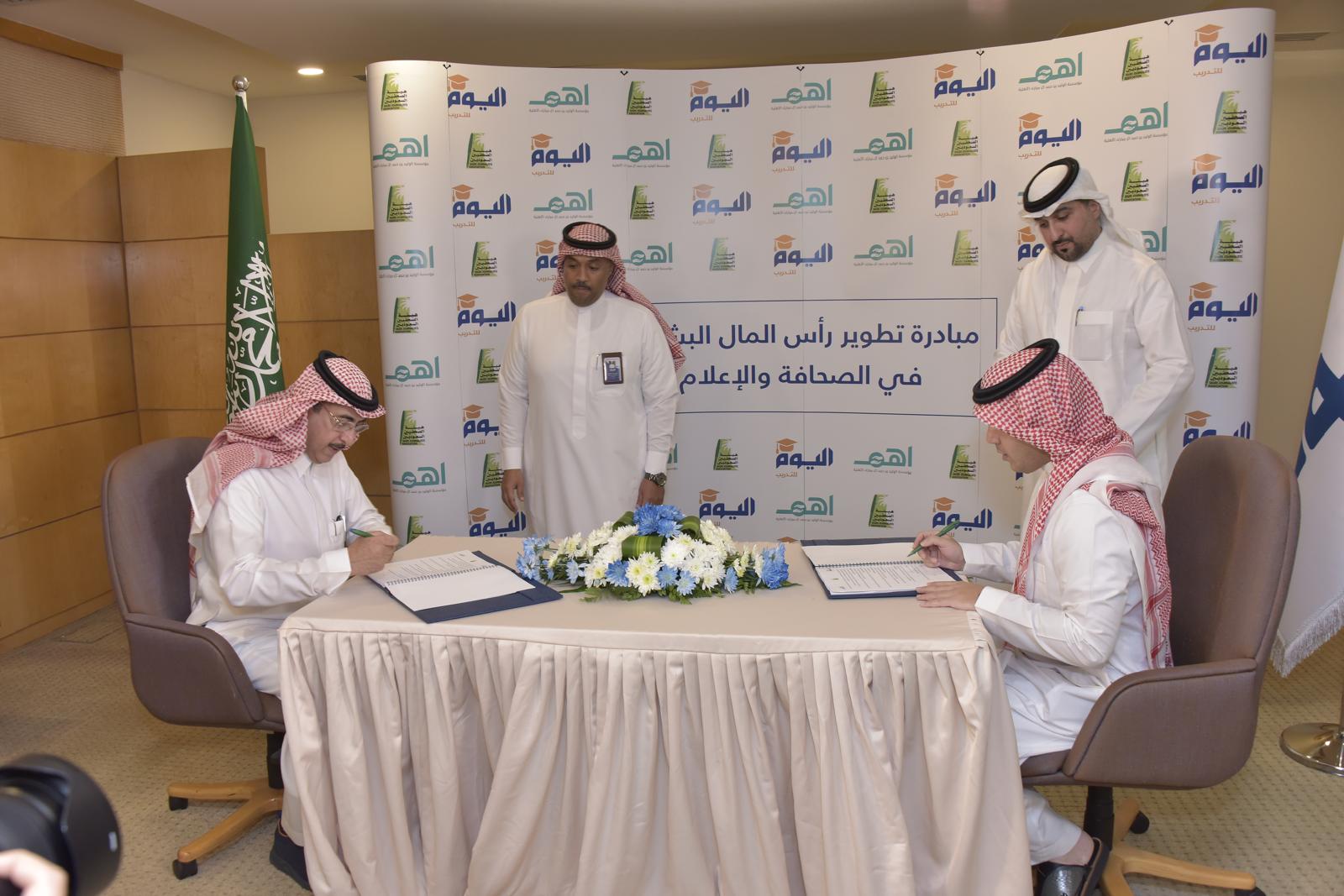 وقعت هيئة الصحفيين السعوديين ودار “اليوم” للإعلام ودهم مؤسسة الوليد ال مبارك الأهلية اتفاقية تهدف إلى تطوير رأس المال البشري في مجال الإعلام الرقمي بالتعاون مع جامعة ميزوري الأميركية. وسيكون البرنامج عبارة عن ١٠٠ مقعد ٧٠ مخصصة لطالبات وطلاب الإعلام حديثي التخرج في مجال الصحافة الشاملة، و ٣٠ مقعدا لمنسوبي المؤسسات الصحفية وسيكون البرنامج لهم في مسار صحافة الذكاء الاصطناعي والميتافيرس.
