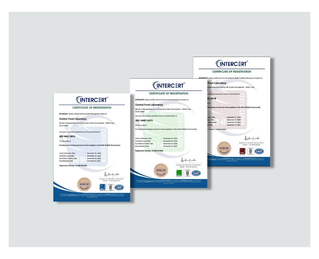 حصل المختبر المركزي التابع لوكالة الخدمات بأمانة محافظة حفر الباطن على 3 شهادات معتمدة عالميًا في مجالات نظام إدارة الجودة (ISO 9001:2015)، ونظام إدارة البيئة (ISO 14001:2015)، ونظام إدارة السلامة والصحة المهنية (ISO 45001:2018)، وذلك بعد تطبيقه المعايير العالمية في جودة إجراءات العمل، ومتابعة تطوير الأعمال، والتميّز في الإنجاز والحصول على الاعتماد ، كما يعكس ذلك جهوده في تلبية احتياجات المستفيد بفعالية، ومراقبة مستوى الجودة، وإدارة العمليات، وتطوير آلية الخدمات بشكل مستمر.