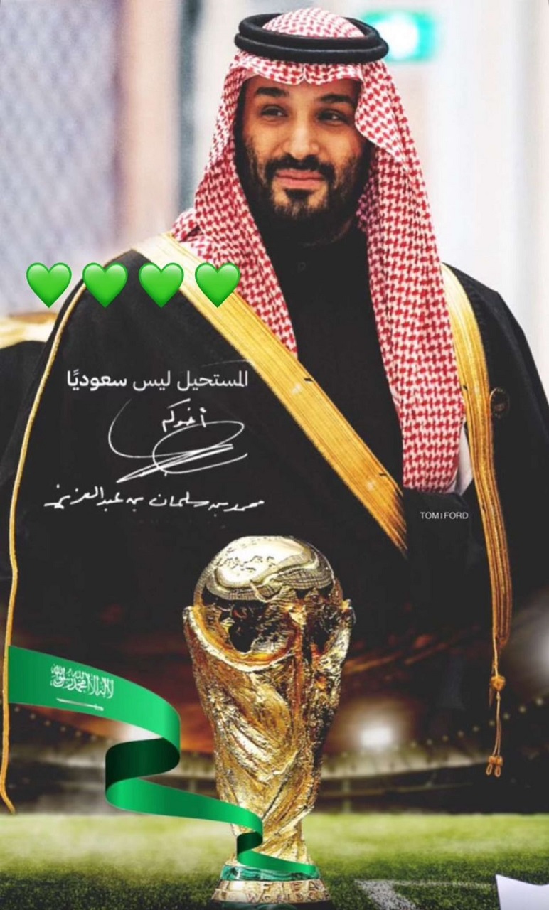 إنها لحظة تاريخية تُبرز مكانتنا على الساحة العالمية. حيث نتطلع لاستضافة أروع حدث عالمي هذا الحدث سيكون فرصة رائعة لإظهار ثقافتنا وتراثنا، وستكون مملكتنا وجهة رياضية مميزة. السعودية الآن بفضل الله أولا أصبحت أول دولة عربية تستضيف كأس العالم بطولة كأس العالم FIFA™ 2034منفردة بنظامه الجديد بمشاركة 48 منتخبًا، مع إقامة البطولة في 5 مدن: الرياض، وجدة، والخبر، نيوم، وأبها.