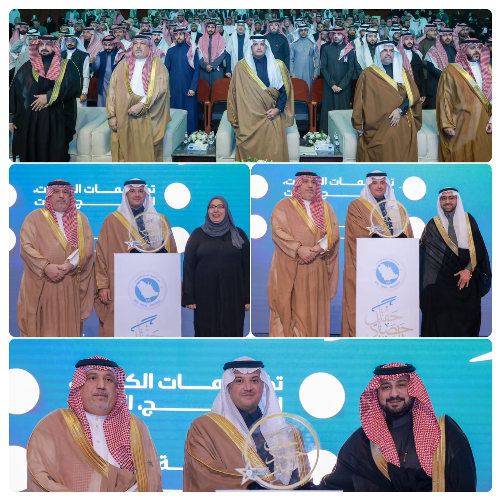 وشهدت الاحتفالية عرضاً مرئياً لمنظومة جوائز التميز في الجامعة ودورها في الارتقاء بالجامعة وتحقيق رؤيتها ورسالتها، فيما كرّم سمو محافظ الأحساء الفائزين والفائزات في مسارات الجائزة من الكليات والأقسام الأكاديمية وأعضاء هيئة التدريس والموظفين، مقدماً لهم شهادات التقدير والجوائز التكريمية.