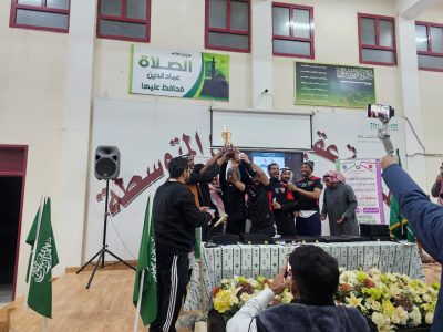 وسلم السياري رئيس قسم النشاط الطلابي الميداليات الفضية للباطن والكأس والميداليات الذهبية للقيصومة .