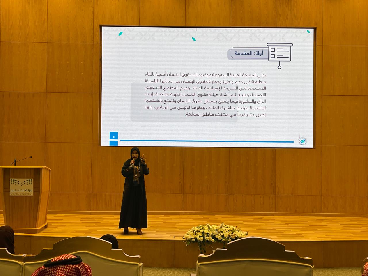 جاء ذلك برعاية مدير عام تعليم المنطقة وبحضور المساعد للشؤون التعليمية فاطمة البلوي، ومدير عام فرع هيئة حقوق الإنسان بالشرقية نوال البواردي، ومديرة البرامج بالهيئة جميلة السفياني، ومستشار الشؤون القانونية بتعليم المنطقة سعيد القحطاني، وسط حضور عدد من القيادات التعليمية والإدارية والطلبة، وذلك بمسرح مبنى تعليم الشرقية الرئيسي بالدمام.