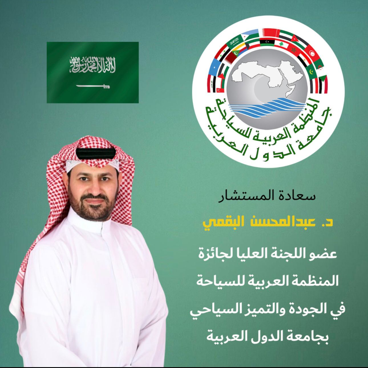 يسر نادي نجوم السياحة أن يزف خبر إختيار رئيس النادي، سعادة الدكتور عبدالمحسن البقمي، مستشارًا للجنة العليا لجائزة المنظمة العربية للسياحة في الجودة والتميز السياحي بجامعة الدول العربية.