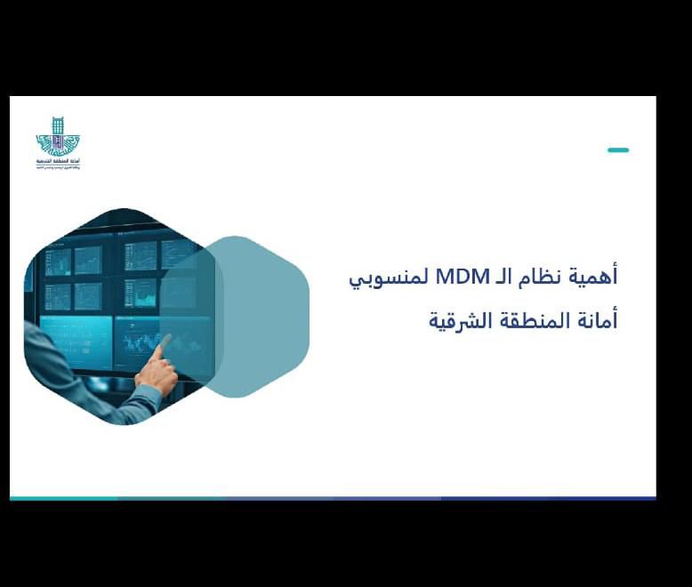 (أقامت أمانة المنطقة الشرقية متمثلة بوكالة التحول الرقمي والمدن الذكية، اليوم الإثنين 13/07/1446هـ، ورشة العمل التعريفية المرئية لنظام (MDM)، والذي يأتي دوره ليكون الحل التقني الذي يسهم في تعزيز حماية البيانات الحساسة للأمانة، وضمان الوصول السلس إلى التطبيقات والخدمات المخصصة للموظفين.