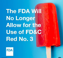أعلنت إدارة الغذاء والدواء الأمريكية حظر استخدام الصبغة الحمراء 3 في الأغذية في أمريكا، لأنها تحفز نمو السرطانات في الجسم، وطلبت من آلاف الشركات المصنعة إزالتها من منتجاتها.