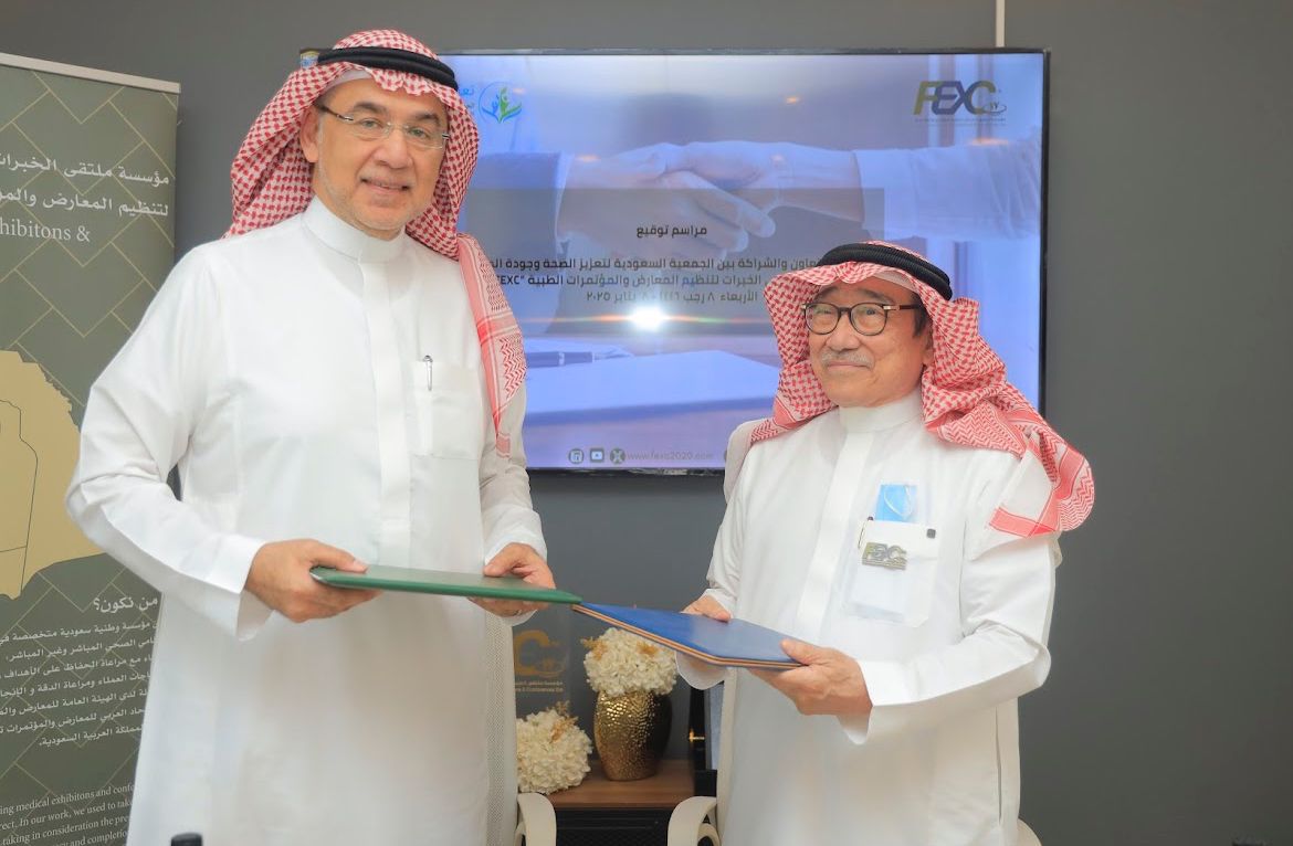 وقعت الجمعية السعودية لـ”تعزيز الصحة وجودة الحياة ” و” مؤسسة ملتقى الخبرات لتنظيم المعارض والمؤتمرات الطبية FEXC ” ، اتفاقية تعاون مشترك ، إذ وقع الاتفاقية عن الجمعية نائب رئيس مجلس الإدارة الدكتور أشرف أمير ، وعن مؤسسة ملتقى الخبرات عضو مجلس الإدارة الدكتور عبدالحفيظ خوجة، وذلك بحضور كل من الرئيس التنفيذي للجمعية الدكتور عمار تنكل والرئيس التنفيذي للمؤسسة الأستاذ حسن البهكلي.
