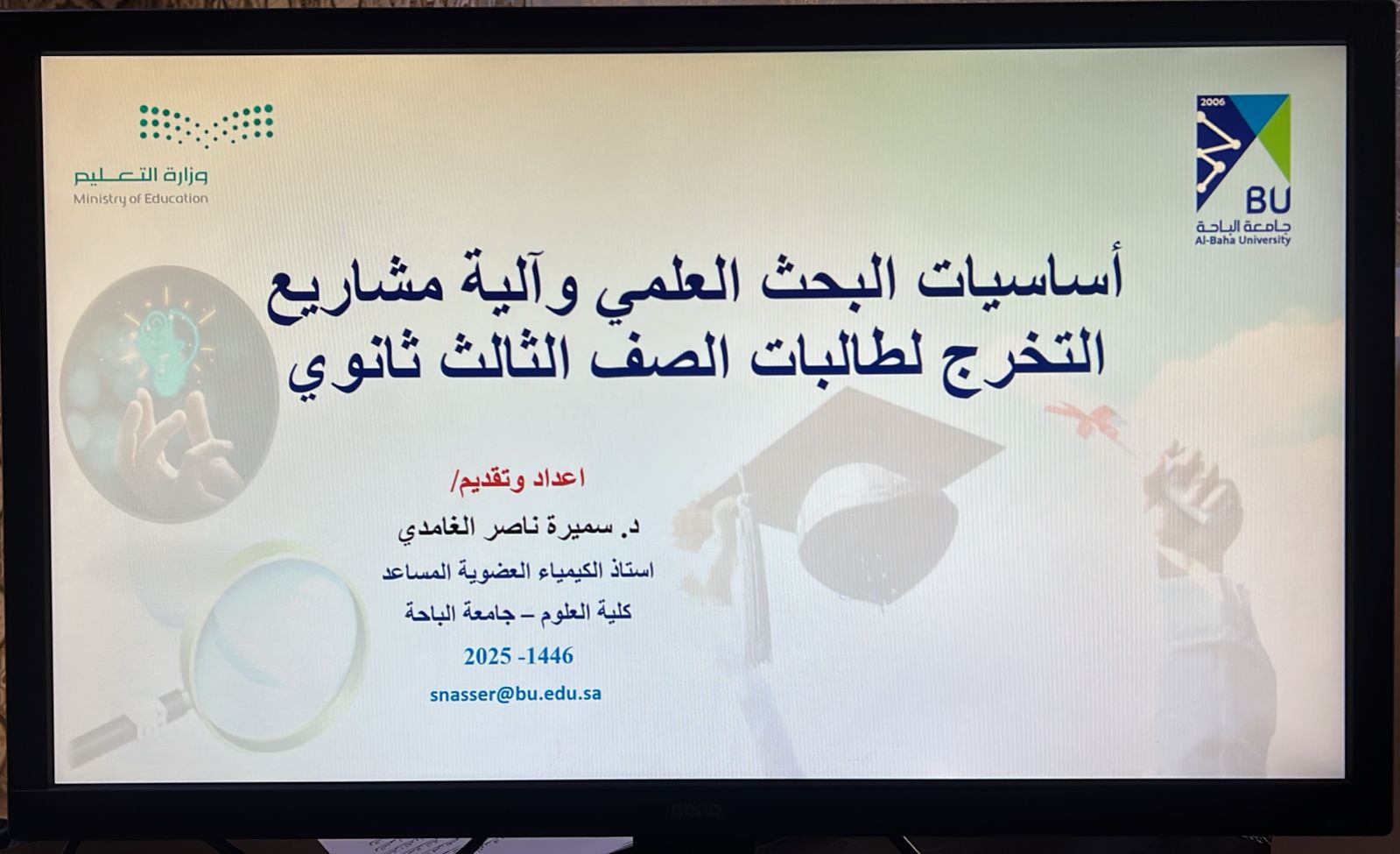 وأفادت رئيس لجنة شؤون الأسرة بإمارة المنطقة الدكتورة سامية بنت قاسم الغامدي، أن البرنامج نُفّذ بهدف تبصير الطالبات بأساسيات البحث العلمي من خلال المحاضرات والجلسات وورش العمل المتخصصة، كما تضمن تبصير المستهدفين بالأساسيات، من أهمها المشكلة والهدف والفرضية والمواد والمتغيرات المستقلة وغير المستقلة والثابتة، والإجراءات والبيانات وتحليلها والنتائج والاستنتاج والدراسات المستقبلية.
