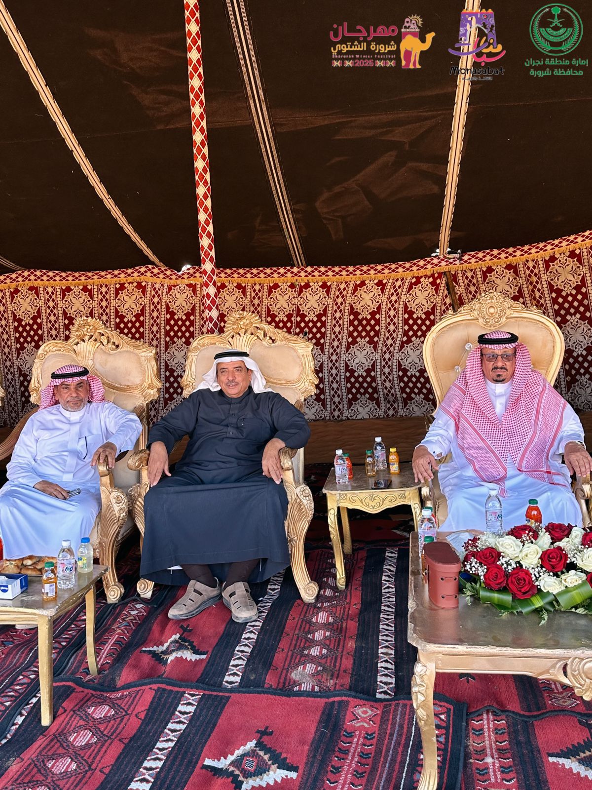 في زياره تفقدية لمهرجان شرورة الشتوي زار محافظ شرورة موفق بن عبداَلهادي العنزي مرافق المخيمات للعديد من المواطنين المشاركين من مختلف القبائل والذي يجسد اللحمة الوطنية بين الشعب السعودي الذي بناه الملك مؤسس الملك عبدالعزيز آل سعود طيب الله ثراه وسار بها أبناؤه الملوك من بعده بظل قيادة حكيمة توحد الصف الواحد وتبني مستقبل مشرق لكافة السعوديين يحق لنا نفخر ونتباها في المنجزات الذي يقودها خادم الحرمين الشريفين الملك سلمان بن عبدالعزيز ال سعود وولي عهده صاحب سمو ملكي الأمير محمد بن سلمان بن عبدالعزيز