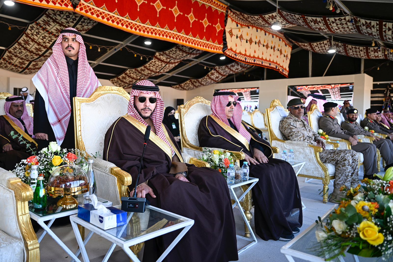 وفور وصول سموه لمقر الاحتفالية في سوق عكاظ بشمال عزف السلام الملكي ليعلن انطلاق مسابقة كأس الطائف للصقور للعام ٢٠٢٥م.