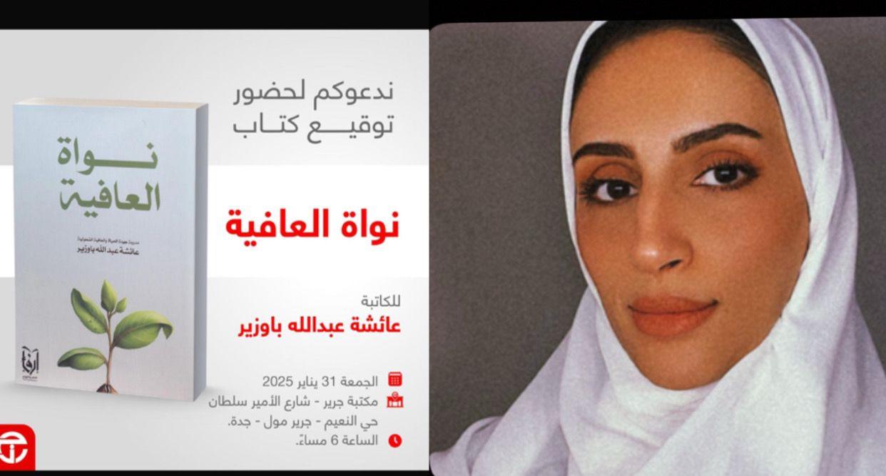 تستعد الكاتبة والمؤلفة الأستاذة عائشة عبدالله باوزير لتوقيع وتدشين كتابها الجديد “نواة العافية” يوم الجمعة القادم، الموافق 31 يناير 2025، بحضور نخبة من الشخصيات الاجتماعية والثقافية، والمسؤولين، والمشرفين التربويين، إلى جانب رواد الأعمال الراعي الرسمي للفعالية.