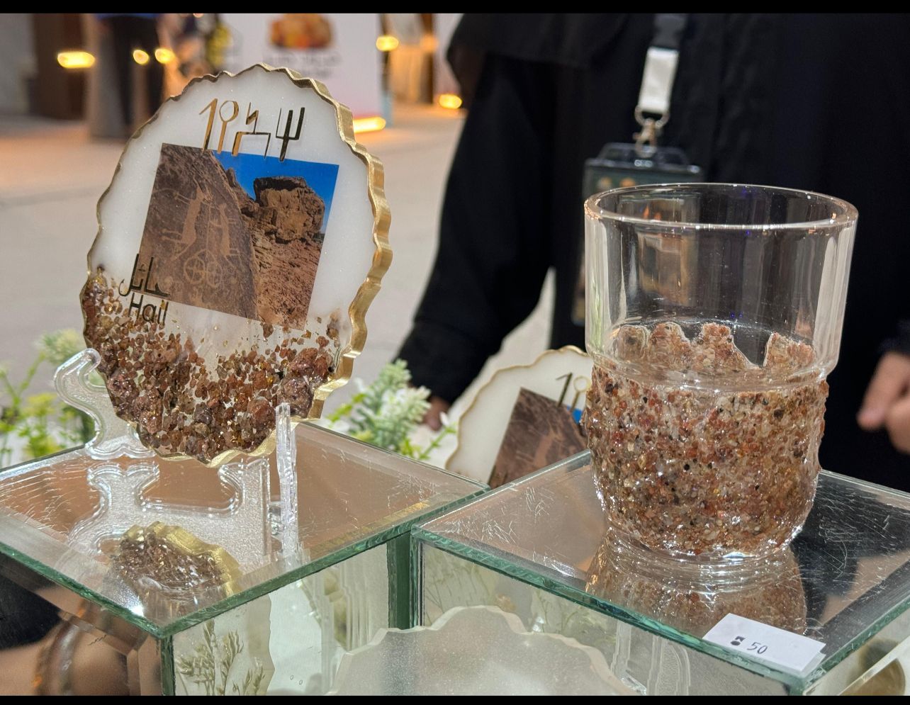 واستغلت هاله المكونات الطبيعية من بيئة منطقة حائل ودمجتها بمادة “الريزن” لصنع عدد من التحف الجمالية وعرضها للاقتناء.