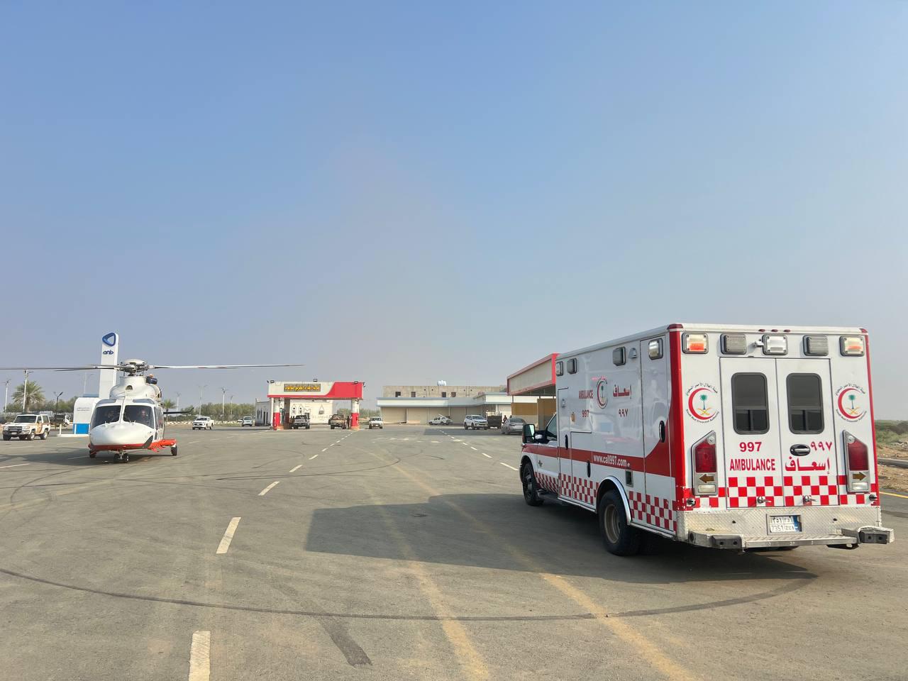 وتمتلك هيئة الهلال الأحمر، أسطولاً إسعافياً مجهزاً بأحدث التقنيات الإسعافية لمواجهة الكوارث والأزمات الطارئة، ويتكوّن من عدة حافلات وعربات مجهزة تجهيزاً كاملاً للتعامل مع مختلف الحالات الطارئة، بالإضافة إلى مركبات الإسعاف تعمل على مدار الساعة، وتستقبل هيئة الهلال الأحمر طلب الخدمة الإسعافية عن طريق الرقم 997، أو عن طريق تطبيق “أسعفني” الذي يتيح للمستخدمين إمكانية إنشاء بلاغ من خلال الهاتف الجوال، واستدعاء فرقة إسعافية، وطلب المساعدة من خلال إرسال نداء استغاثة، ومعرفة حالة البلاغ، وتتبُّع مساره، كما يتيح للفِرق الإسعافية الاستدلال على موقع المبلِّغ، ويوفِّر أيضًا معرفة المنشآت الصحية القريبة من المستخدم، وأرقام الطوارئ، والجهات الإغاثية الأخرى.