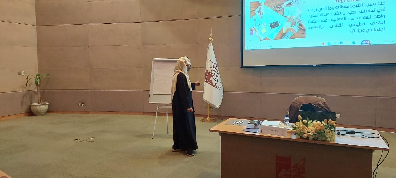 تطرق د.تركي العيار في البداية إلى توضيح مفهوم تنظيم الفعاليات و هو عملية تخطيط وتنفيذ الأنشطة التي تجمع بين مجموعة من الأفراد أو المشاركين بهدف معين، سواء كان ترفيهياً، تعليمياً، إجتماعيا، ثقافيا، رياضيا، او تجارياً. يتطلب التنظيم الجيد اهتماماً بالتفاصيل المختلفة لضمان نجاح الفعالية وتحقيق أهدافها ، والتي تكون ضمن الأهداف التالية:تعزيز التواصل وبناء العلاقات. ، نشر الوعي والتثقيف ، التسويق والترويج ، الترفيه والتسلية، جمع التبرعات، تحفيز التفاعل المجتمعي والمشاركة، الإحتفال بالإنجازات، وتنمية المهارات وبناء القدرات.
