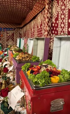 وبعدها ننتقل لأطباق جمعة بين القديم والحديث وهي سلطات وغيرها قدمت بطريقة مبتكرة على أيدي مهارات سعوديات نتباهى بهن ،وهي لمسات يد الشيف حصة الصليهم .