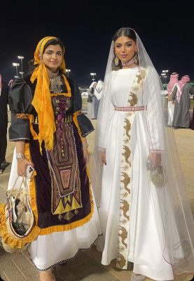 كما شاركت سفيرة السلام رند بن علي بزي التراثي العسيري الذي أعجب الحضور وعدسات الكميرات .