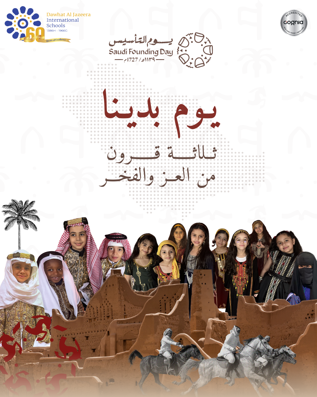 في يومٍ تتجسد فيه معاني الولاء والانتماء، وتنبض القلوب بأمجاد الوطن، وتحت سماءٍ تتلألأ بطموحات المستقبل التي لا تعرف الحدود، احتفلت مدارس دوحة الجزيرة العالمية برعاية وإشراف المدير العام للمدارس الأستاذة وفاء احمد القاضي بيوم التأسيس السعودي، مستذكرة اللحظة التاريخية التي خطّ فيها الإمام محمد بن سعود أولى خطواته نحو بناء وطنٍ شامخ، عندما أُسست الدولة السعودية الأولى في 22 فبراير 1727م. كان هذا التاريخ بداية حلمٍ عظيم، حلم تحوّل اليوم إلى واقع يعانق السماء.