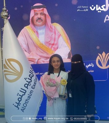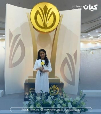 ومن الفائزات كانت ابنة جمعية كيان للأيتام ” الريم فيصل عبد الوهاب غيث” ومثلت جمعية كيان للأيتام ذوي الظروف الخاصة في الحفل الأستاذة هديل بنت محمد الغيلان مديرة قسم التنمية والتمكين بالجمعية.
