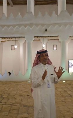 خلال الجولة، قدّم الأستاذ عبدالرحمن الوهيبي شرحًا وافيًا عن قصر المربع، الذي يُعدّ إحدى التحف المعمارية التراثية في الرياض، وشاهدًا على مرحلة مهمة من تاريخ المملكة العربية السعودية. يقع القصر وسط مدينة الرياض، وقد أمر الملك عبدالعزيز آل سعود – طيب الله ثراه – بتشييده عام 1357هـ (1938م) ليكون مقرًا لإدارة شؤون الدولة بعد انتقاله من قصر الحكم في الديرة. شهد القصر العديد من الأحداث التاريخية المهمة، ومنها إعلان توحيد المملكة وإصدار العديد من القرارات الوطنية الحاسمة.