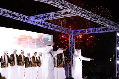 عقب ذلك، انطلقت عدداً من العروض الشعبية والالعاب النارية والفرق الغنائية وفرق الاطفال احتفاءً بعيد الفطر المبارك، وعروضاً للنافورة التفاعلية التي جذبت الانتباه.