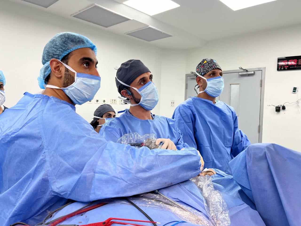 وبعد عمل الفحوصات والأشعات اللازمة تم تشخيص الحالة وتكوين فريق العمل ومعاينة المريضة في العيادات الخارجية ورسم خطة منهجية للإجراء الجراحي بالمنظار مع وضع كافة الاحتمالات.
