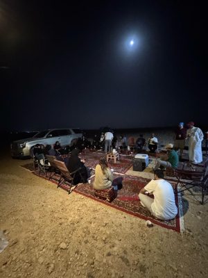 وتخلل البرنامج جلسة سمر مميزة مع الشاي والقهوة، تضمنت شرحًا وافيًا عن مواقع النجوم والقصص المرتبطة بتاريخ الدول السعودية الثلاث، قدمها قائد الرحلة الأستاذ والمدرب عبدالرحمن الوهيبي، أعقبها مسابقة معرفية خفيفة عن معلومات الرحلة أدارها الدكتور والمدرب ثامر المحبوب.