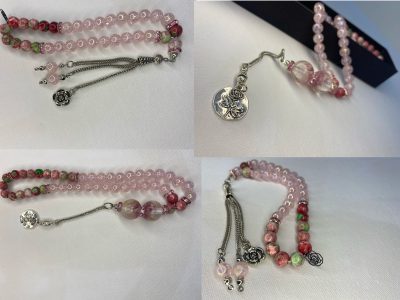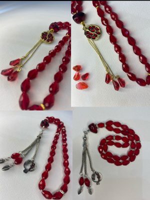 لم تتوقف إلهامات الفنانة القثامي عند اللوحة، بل امتدّت إلى تصميم مسابيح مستوحاة من ثمار الطائف الأصيلة: الرمان، العنب، والورد الطائفي، في سابقةٍ فنيّةٍ هي الأولى من نوعها.