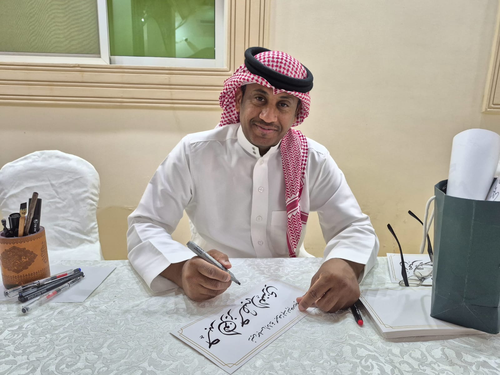في عالم الخط العربي الساحر، يبرز اسم الفنان تركي عبدالله العويس كقامة شامخة، كخطاطٍ وهب حياته وأبدع ريشته لخدمة هذا الفن الأصيل. مسيرة فنية حافلة بالإنجازات والابتكارات، جعلت منه علامة فارقة في المشهد الخطّي السعودي والعربي، ومرجعًا يُقتدى به في جماليات الحرف العربي.