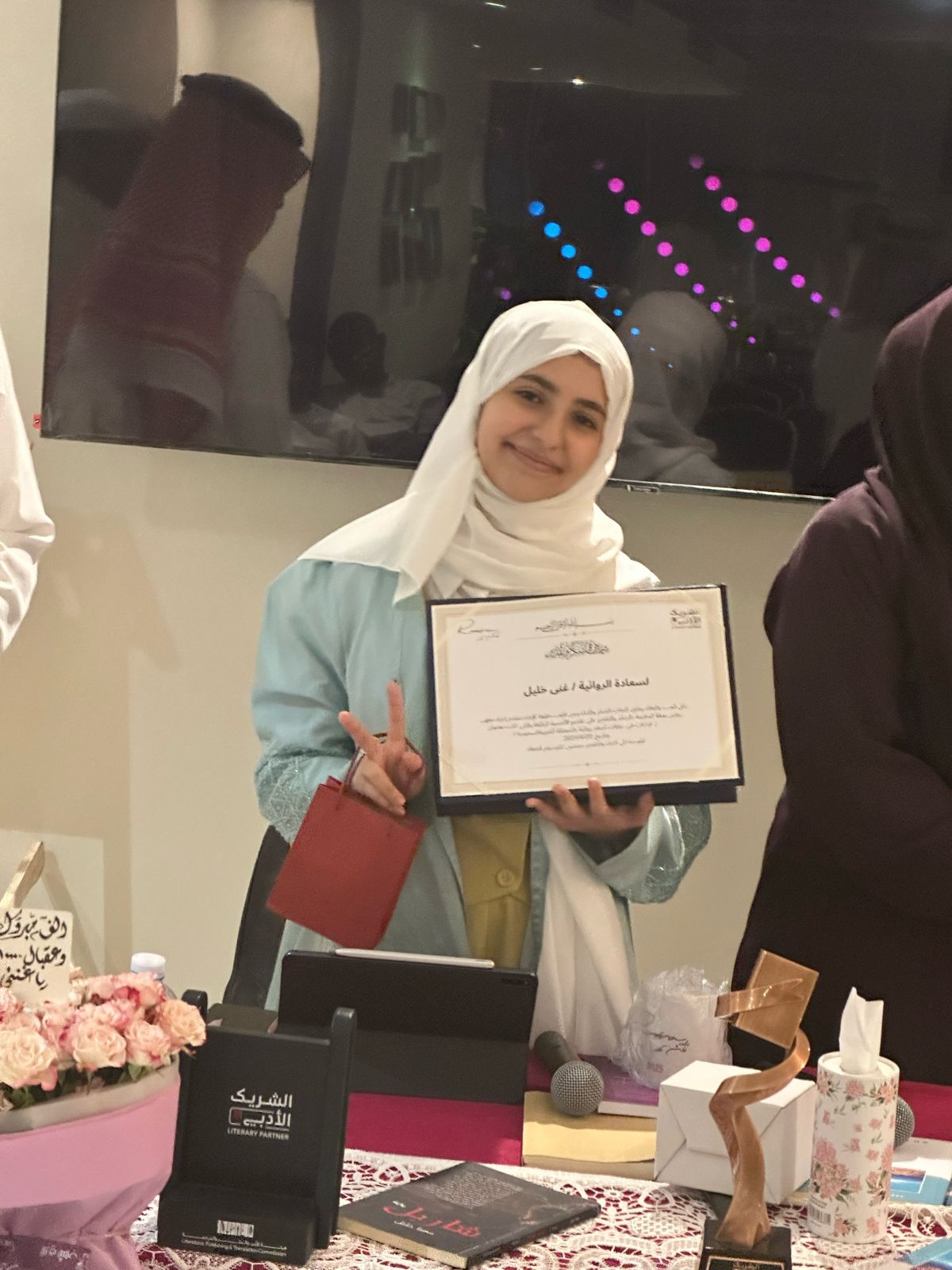 في أمسية أدبية ساحرة احتضنها صالون روشن الثقافي مساء الأحد الموافق ٢٠ أبريل ٢٠٢٥م، تحت مظلة الشريك الأدبي، تألقت الروائية الطفلة غنى خليل، التي تُعد أصغر روائية في المملكة، لتشارك تجربتها الأدبية الملهمة مع جمهور من المثقفين والأدباء والمهتمين بالشأن الثقافي. وقد بدأت الأمسية باستعراض لنقطة انطلاق غنى نحو عالم الكتابة، حيث أوضحت أنها لم تكن لحظة محددة بل كانت أشبه بنهر يتدفق بداخلها منذ الصغر، وجدت في الكلمات وسيلة للتعبير عن أفكارها ومشاعرها، وتطور الأمر تدريجيًا ليصبح شغفًا لا يمكنها الاستغناء عنه. وأشارت إلى الدور المحوري الذي لعبه دعم والدها في مسيرتها، حيث وفر لها بيئة محفزة وآمن بموهبتها منذ البداية.