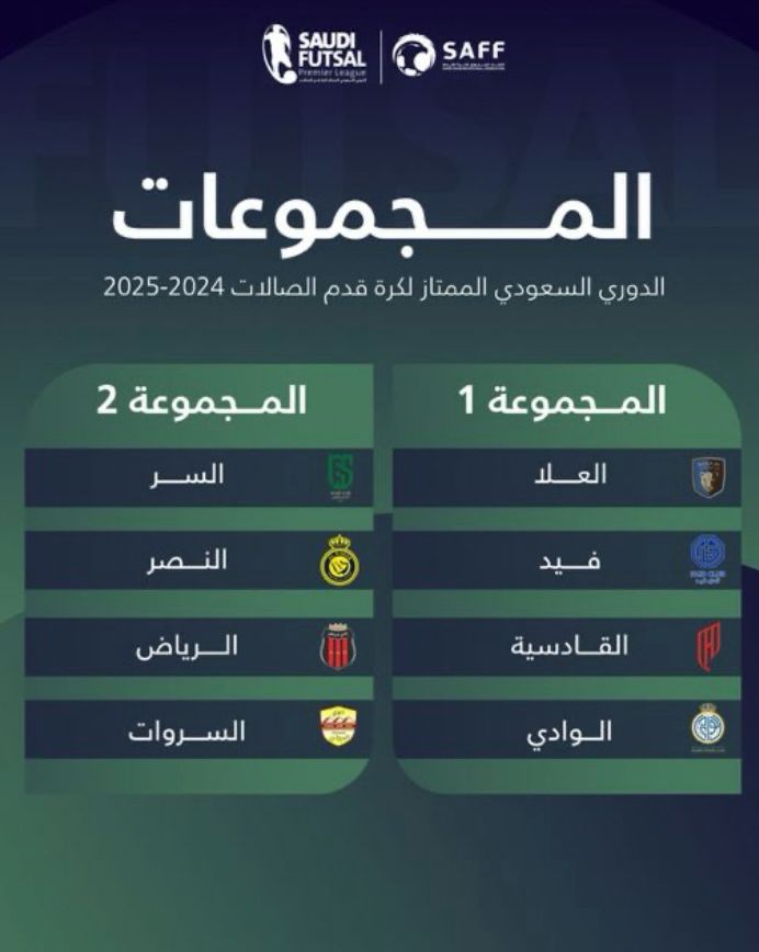 ‎اطلقت الأحد الأدوار النهائية من الدوري السعودي الممتاز لكرة قدم الصالات للموسم الرياضي 2024-2025، بمشاركة أندية العلا، فيد، القادسية، الوادي، السر، النصر، الرياض والسروات.