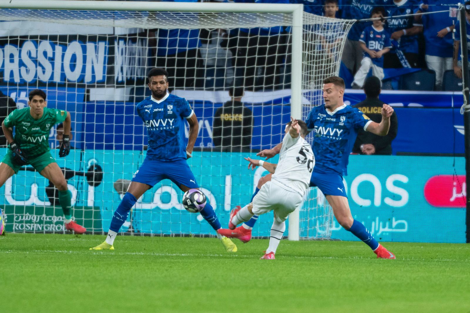 ‎وكاد ألكسندر ميتروفيتش أن يسجل هدف التقدم للهلال في الدقيقة الأخيرة من الشوط الأول، بعد أن تلقى تمريرة من مالكوم داخل المنطقة ليطلق تسديدة مباشرة مرت بجوار القائم الأيسر.