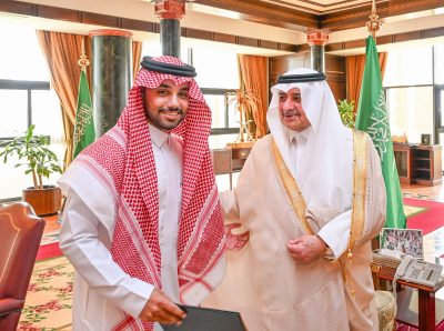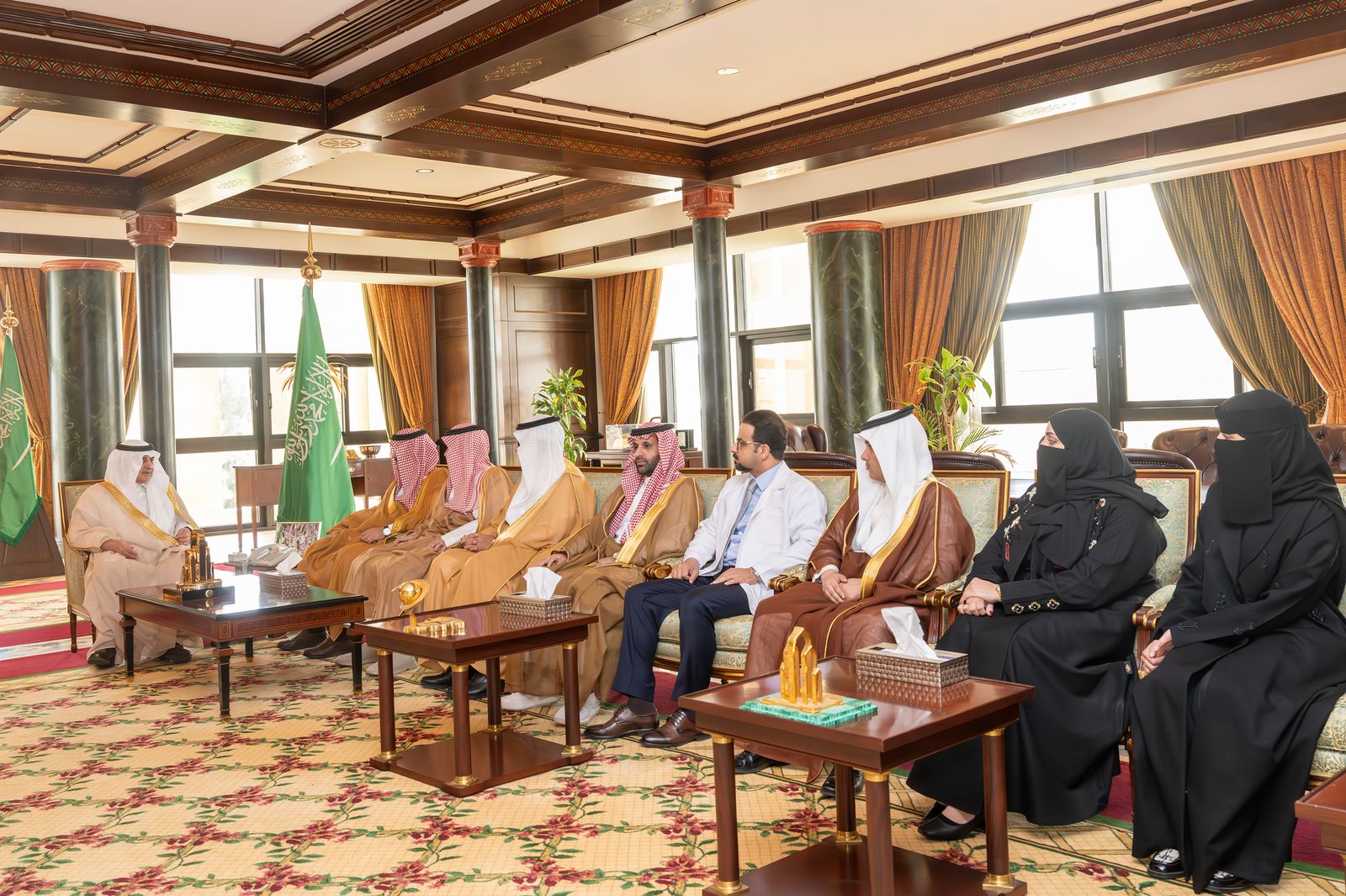استقبل صاحب السمو الملكي الأمير فهد بن سلطان بن عبدالعزيز أمير منطقة تبوك، بمكتبه بالإمارة اليوم، رئيس جامعة تبوك الدكتور عبدالعزيز بن سالم الغامدي، يرافقه الدكتور مانع بن محمد القحطاني، الفائز بالميدالية الفضية في معرض جنيف الدولي للاختراعات لعام