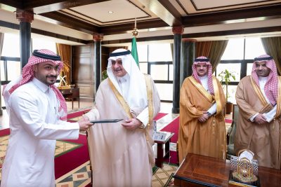مقدماً سموه التهنئة للجامعة وللفائزين، على هذا الإنجاز الذي يعد مفخرة لتبوك ولعموم الوطن،ومنوهاً بالدعم الكبير الذي توليه القيادة الرشيدة -أيدها الله-، للبحث العلمي والابتكار، من خلال تشجيع المخترعين والمبتكرين، وتوفير البيئة الملائمة، والمراكزالبحثية المتطورة في عموم الجامعات بالمملكة، بهدف الوصول إلى التميز والريادة والمنافسة العالمية.وفي ذات السياق قدم سموه التهنئة للطلاب، بيادر عوض العطوي، ومزون دغش البلوي، وعبدالله أحمد الحجيلي، وعبدالرحمن عمر الفاخري، لحصولهم على الدرجات العليا في اختبار هيئة التخصصات الصحية على مستوى المملكة وقال سموه في حديثه لهم “شرفتمونا اليوم وشرفتم بلدكم بالتفوق والنجاح ، وانتم كسعوديين وسعوديات ولله الحمد عندما تشاركون في أي محفل تحصلون على أعلى الجوائز , مثنياً سموه على جهود وتميز مخرجات جامعة تبوك في مختلف المجالات، مما يسهم في تحقيق مستهدفات رؤيةالمملكة 2030.