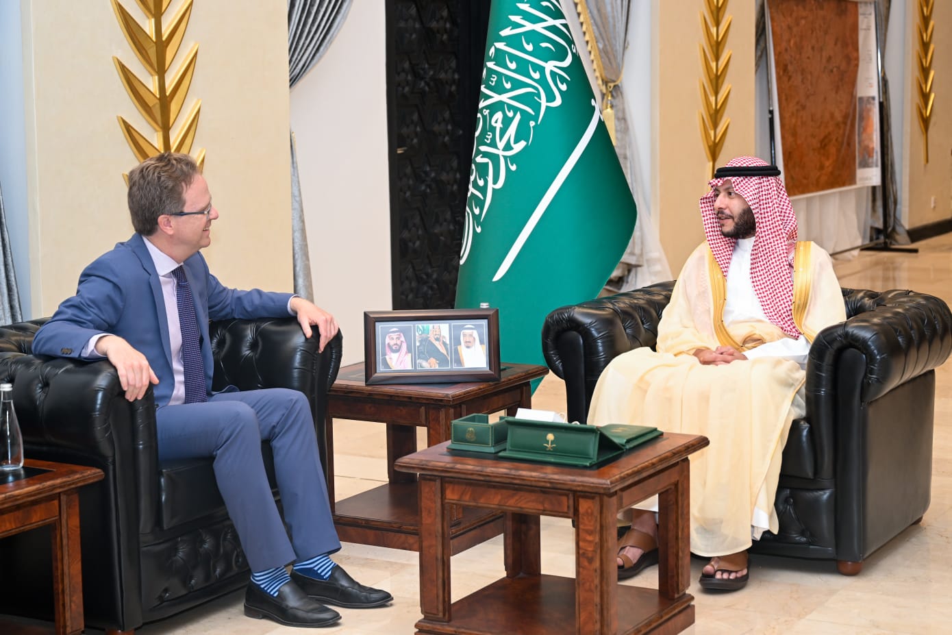 التقى صاحب السمو الملكي الأمير سعود بن نهار بن سعود بن عبدالعزيز محافظ الطائف في مقر المحافظة السفير الكندي لدى المملكة، جان فيليب لينتو.