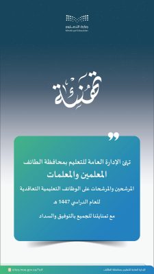 وفي التفاصيل، قال الدكتور “الغامدي” إن “تعليم الطائف” لا تألو جهدًا في تسخير إمكاناتها كافة لاستقبال المرشحين والمرشحات للوظائف التعليمية التعاقدية. وأضاف أنه تم تشكيل اللجان العاملة وفرق العمل، وتهيئة مركز إجراء المطابقة والمقابلات الشخصية بالمستلزمات التقنية والمكتبية اللازمة كافة، وإشعار المرشحين والمرشحات كافة برسائل بمواعيد مراجعتهم لاستكمال الإجراءات.