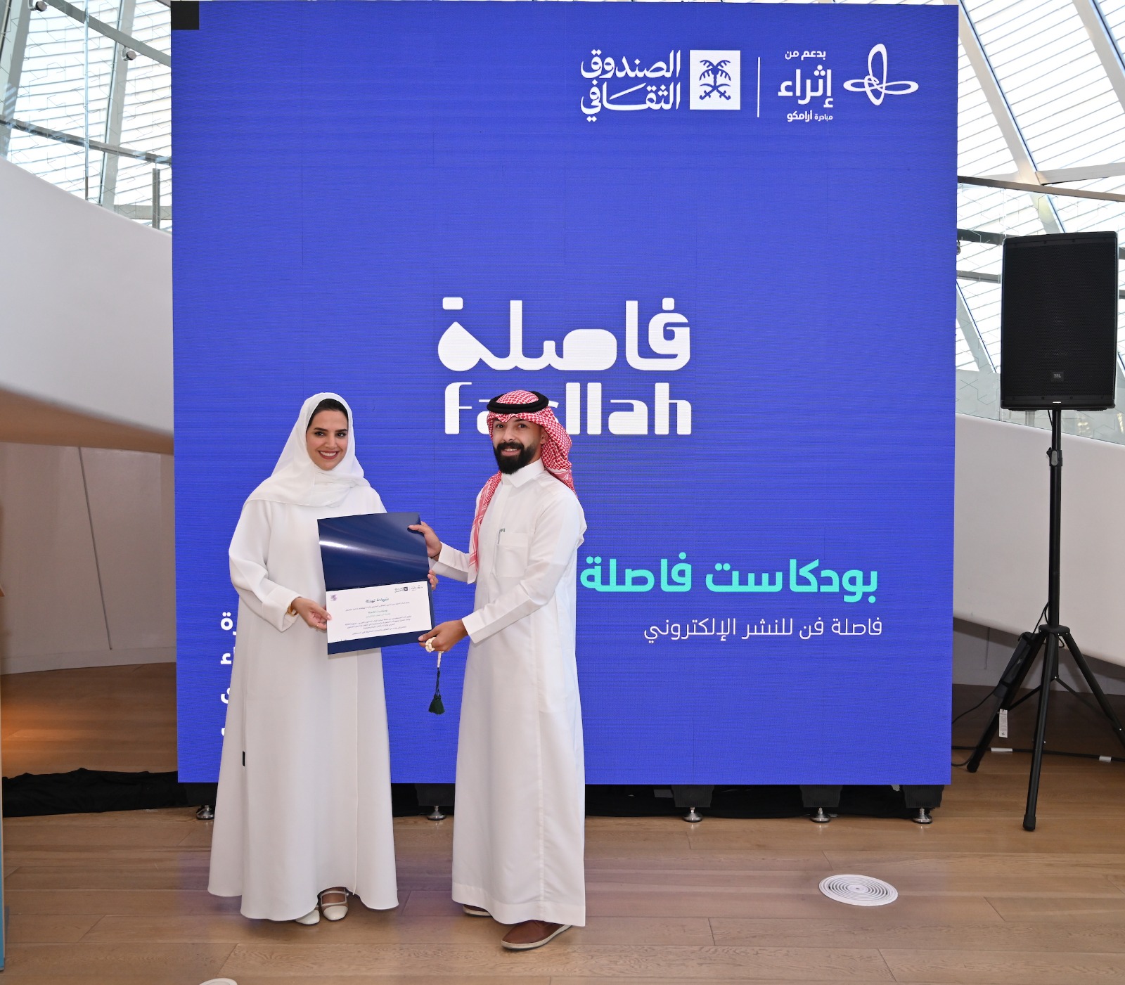 يشار إلى أن بودكاست فاصلة كان أحد المشاريع الفائزة بالدورة الثالثة من مبادرة إثراء المحتوى العربي، ضمن مسار التدوين الصوتي حيث يدعم المسار المنشآت الصغيرة والمتوسطة في مشاريع البودكاست الذي ينشر محتوى بفكرة جديدة ومجال متخصص حول أي موضوع متعلق بالثقافة المحلّية  أو العربية ويقدم منحًا تصل إلى 200,000  ريال سعودي كحد أقصى لكل مشروع.