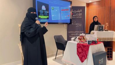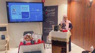 وتحدثت ايضاً الدكتورة : هيفاء إبراهيم فقية عن هذه الأمسية بانها إستثنائية جمعت بين جمال الكلمة وروعة اللحن وقوة الرسالة التعليمية. وعرضت الأستاذة زكية سهل اللحياني للجمهور الكريم أفكار ملهمة عن أدب إستخدام الأغاني في تعليم اللغة الإنجليزية .