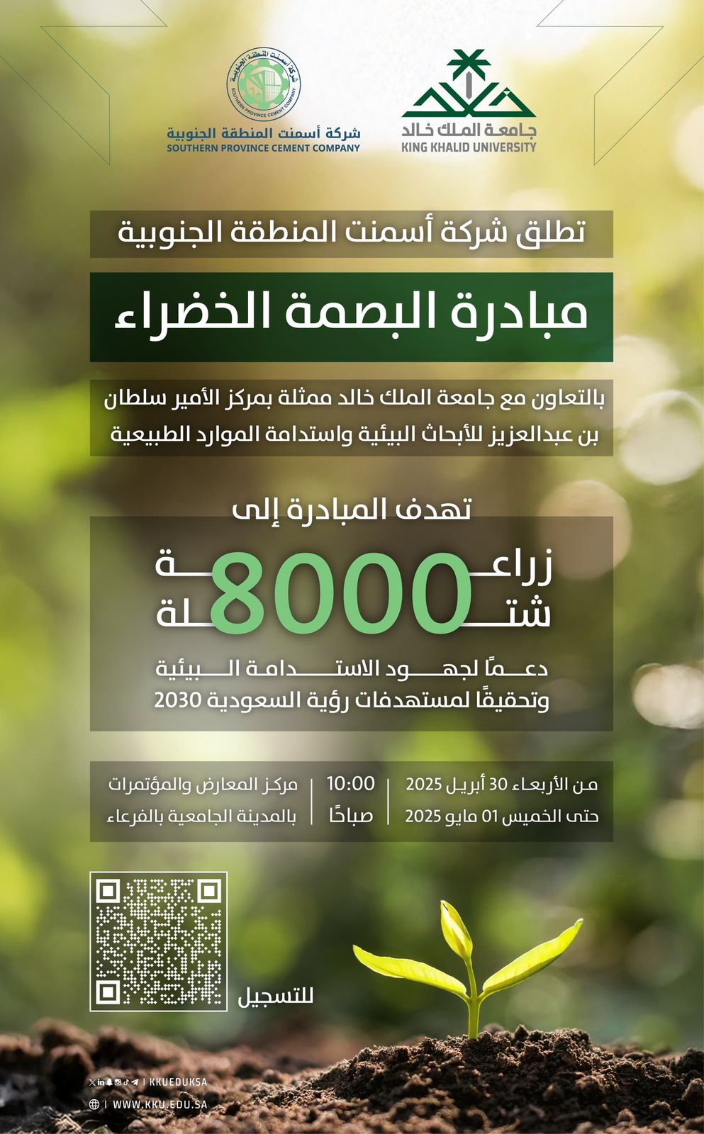 وتأتي مبادرة “البصمة الخضراء” امتداداً لجهود الشراكة الفاعلة بين القطاع الخاص والمؤسسات الأكاديمية، حيث يجسد التعاون بين شركة أسمنت المنطقة الجنوبية وجامعة الملك خالد نموذجاً متقدماً للتكامل في خدمة المجتمع وتعزيز الاستدامة البيئية، انطلاقاً من الالتزام المشترك بالمسؤولية الاجتماعية، ودعم العمل التطوعي، وتمكين المبادرات التنموية ذات الأثر الإيجابي.