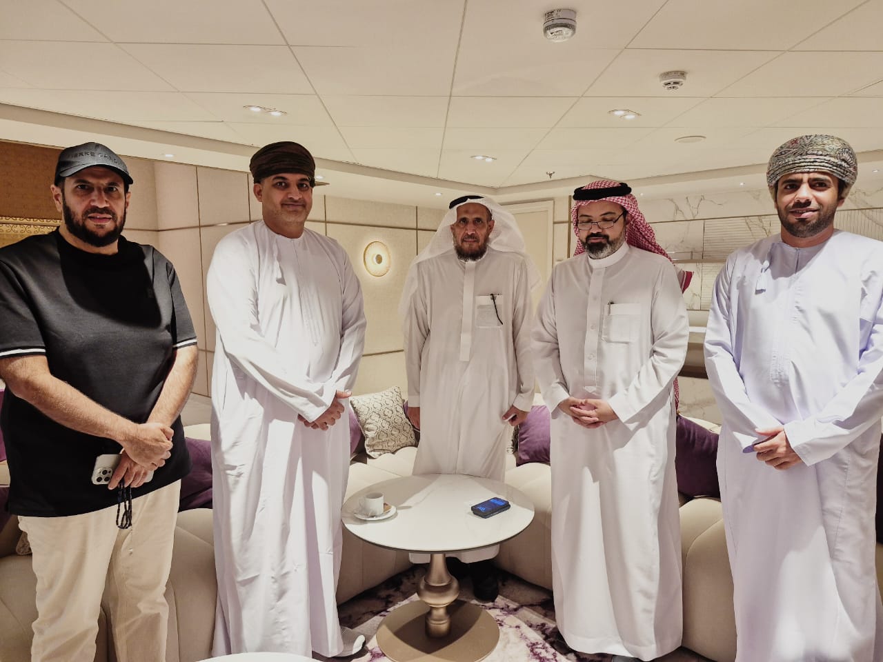 في سياق الفعاليات المصاحبة للمؤتمر العائم للامتياز التجاري المقام على متن إحدى الكروزات، عقد الدكتور خالد الغامدي، رئيس اللجنة الوطنية للامتياز التجاري، اجتماعًا وديًا مع المهندس حمود بن سالم بن محمد السعدي، النائب الثاني ورئيس مجلس إدارة فرع الغرفة بمحافظة جنوب الباطنة. يحضور عدد من رجال الأعمال